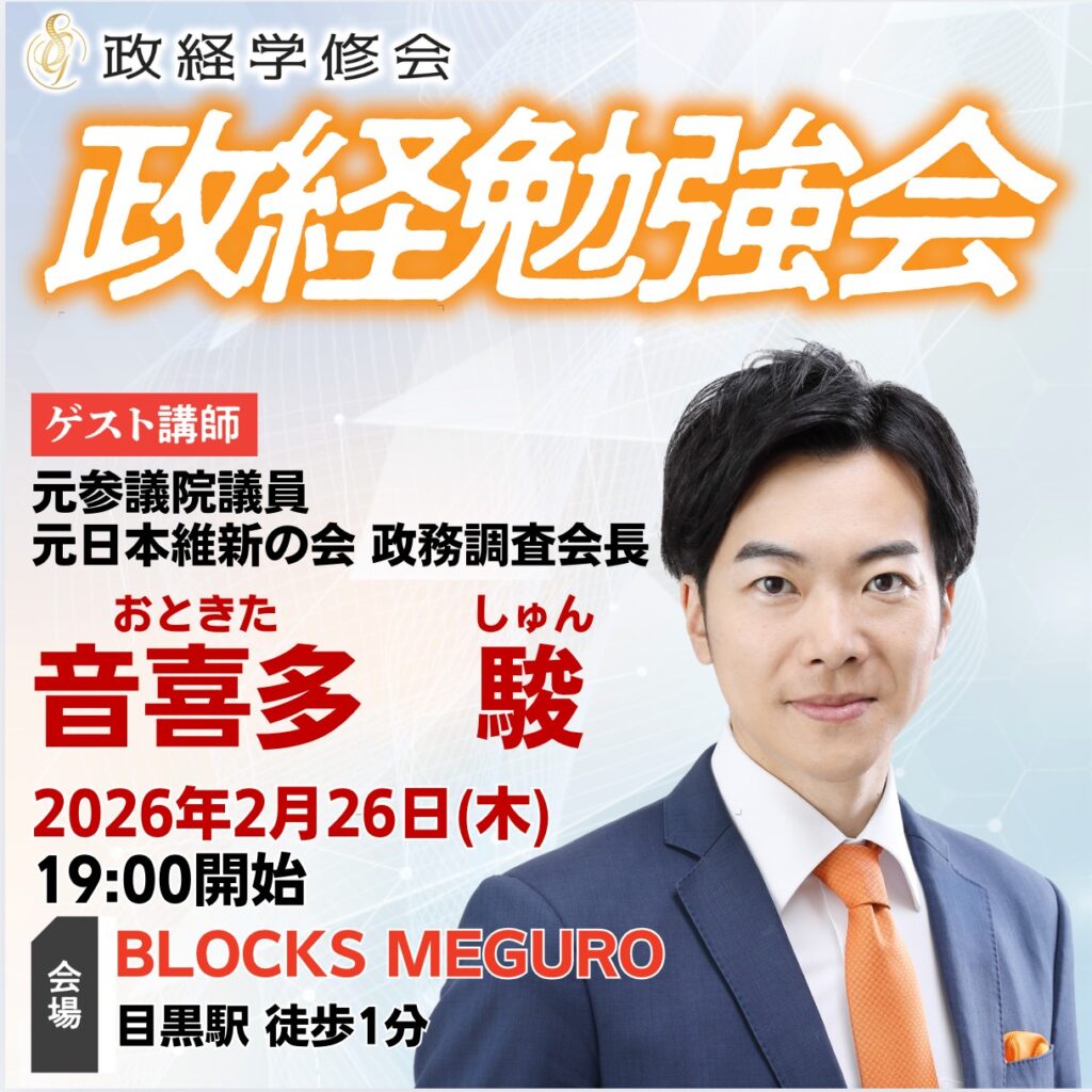 政経学修会【音喜多駿 前参議院議員】勉強会 開催決定!